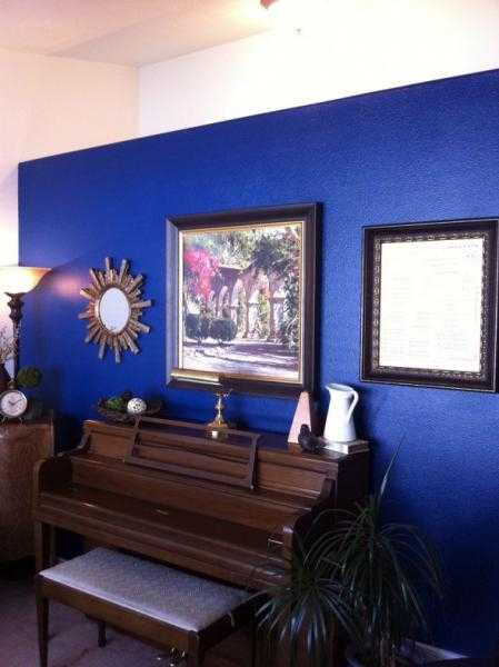 Просторный зал дает больше возможностей с выбором цвета, а насыщенные цвета имеют свойства к стимуляции активности. Этим обладают ярко-оранжевый, зеленый и сиреневый цвет.