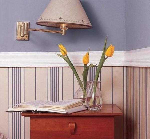 - Горизонтальное расположение полос расширит пространство. Линию соединения украсить молдингом.