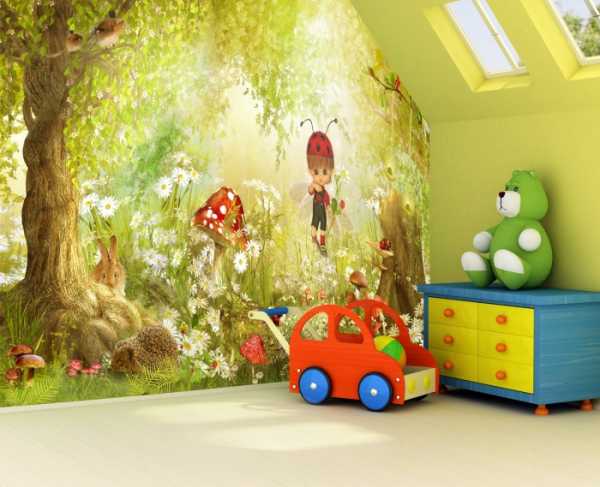 - Фотообои – неплохой вариант для любителей разнообразия. Наиболее востребованными являются фотообои для детских комнат с изображением героев мультипликационных фильмов, благодаря которым, ребенок сможет ощутить себя в сказке;