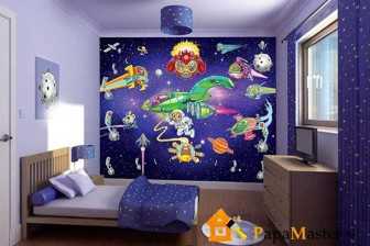 Такое оформление комнаты ребенка обеспечивает эффект присутствия. Он очень понравится ему, ведь можно словно находиться в разных местах. Изображение способно перенести малыша, подростка в сказку, отправить в дальние моря, страны, планеты. Можно разместить также космический корабль, пусть он мечтает во время засыпания побеждать в межзвездных войнах.