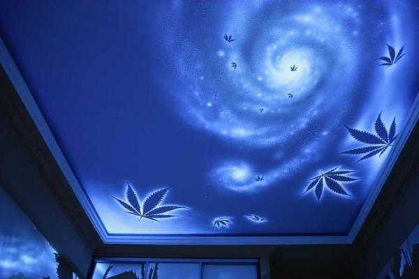 Флуоресцентные обои с объемным эффектом перевернули наше представление об интерьере потолков. Клеятся они так же, как и обычные обои, а выглядят потрясающе. С их помощью можно создать эффект бездонного неба с облаками, птицами или ангелами, созвездия, ночную россыпь звезд и Млечный путь. Все зависит только от желания клиента. Кроме красоты, поражающей воображение, кибер-обои служат еще и дополнительным источником освещения в зоне отдыха либо ночником в спальне и детской.
