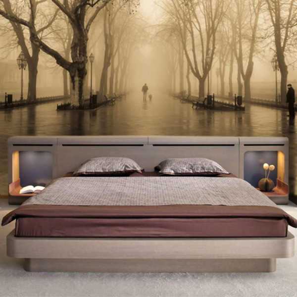 Не стоит выбирать фотообои для спальни с резкими, агрессивными и чрезмерно контрастными рисунками. Желательно придерживаться пастельной палитры, которая будет сочетаться с тоном остальных стен. Для маленьких спален подойдут стереоскопические 3д фотообои, обладающие глубоким объемным эффектом.