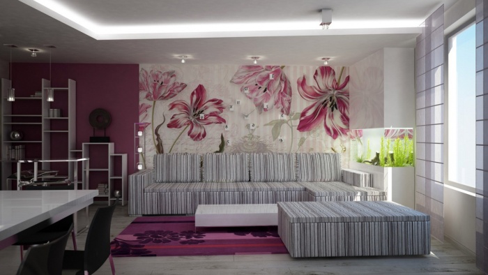 Не следует нарушать правила гармонии. Цвет выбранных вами обоев должен идеально сочетаться с цветом мебели, напольного покрытия и штор.