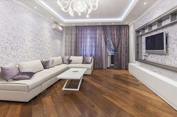 Для расширения пространства в гостиной с низкими потолками можно использовать светлые зальные обои с вертикальными полосами, а в узкой – с горизонтальными. Следует помнить, что полосы обоев в гостиной должны быть светлыми и практически незаметными, также допускается мелкий цветочный рисунок.