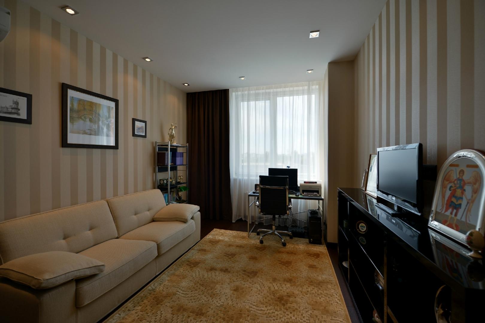 В гостиной соблюдение особенностей этого эффекта немаловажно: такие комнаты предназначаются для многих целей, и свободного пространства должно хватать для всех. Темные фоновые обои зрительно уменьшат интерьер, а светлые, дополненные глянцевыми эффектами, расширят площадь комнаты.