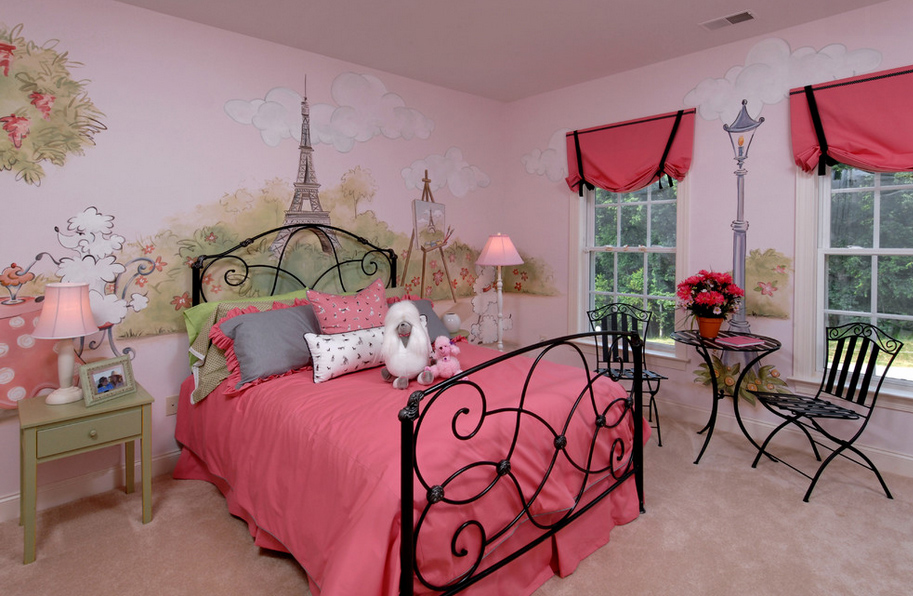 В стиле Париж используют также белую или бежевую краску. Допустимы постеры и фотообои с изображением достопримечательностей города. Мебель – кованая или резная.