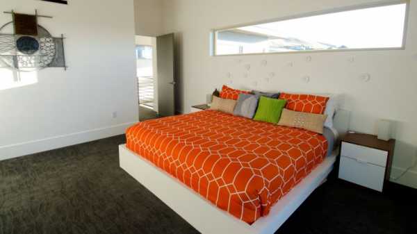 Хорошо учитывать расположенность спальной комнаты. Например, окнами на восток или же юг, означает, солнечного света в ней станет предостаточно. При этом месторасположении спальни, возможно, применить прохладные тона, к примеру, лиловый, небесный цвет, нежно зелёный.