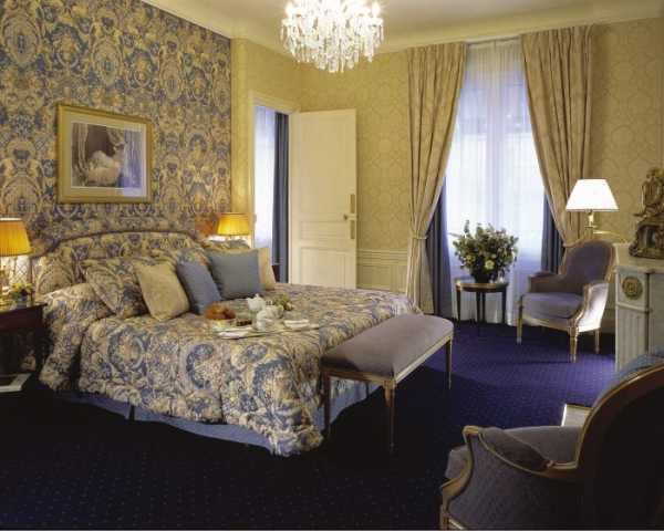 - Спальня в классическом стиле, более яркими обоями оклеена противоположная от кровати стена