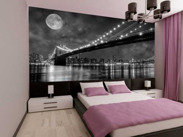 Чтобы создать в спальне неповторимый дизайн и реализовать любые идеи и фантазии, можно использовать различные виды фотообоев. Любой пейзаж, фотография или постер с любимым фильмом можно превратить в шпалеры и использовать для оформления одной из стен в комнате.