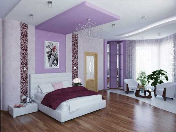 Таким образом обычно выделяют изголовье кровати, но часто это сопряжено с работами связанными с формированием, каких то эстетических элементов, выполняемых из гипсокартона: различные ниши, разноуровневые потолки и др