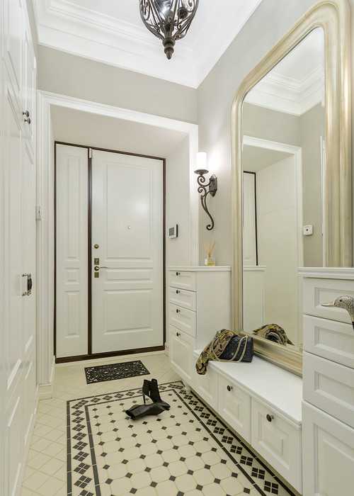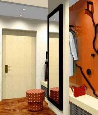В совсем маленькую входную комнату можно поставить вешалку для одежды, подставку или навесной шкаф для обуви. Непременный атрибут – зеркало, которое должно быть расположено на уровне глаз человека среднего роста. Рядом можно прикрепить открытую настенную полку для разных мелочей. Стильно будет смотреться небольшой настенный органайзер для хранения перчаток, ключей и т. д. Для того чтобы было удобно обуваться, следует предусмотреть небольшое кресло или стул.