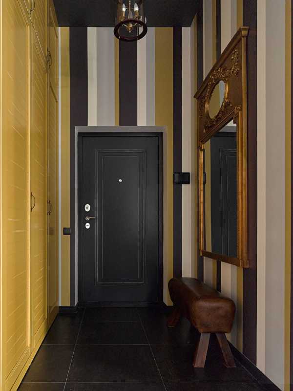 Оформление прихожей бежевыми обоями— золотистый цвет вносит в интерьер ощущения тепла и используется преимущественно со светлыми, приземлёнными оттенками, тогда как в сочетании с тёмными насыщенными цветами способен создать, что называется, готическую обстановку;