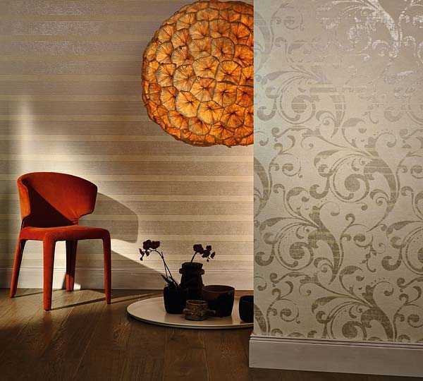 Для такого дизайнерского решения идеально подойдут обойные полотна-компаньоны. Они принадлежат к одной цветовой гамме и фактуре, имеют одну серию и одинаковы по толщине. Можно подбирать их и самостоятельно, однако для удачного результата потребуются определенные навыки. Известные крупные производители всегда производят обои-компаньоны в достаточно большом ассортименте. Так что нет необходимости «изобретать велосипед». Скомбинировать можно два и более варианта в такой серии. Например, можно рулон с более выразительным рисунком использовать на нижнюю половину стены, а с едва угадываемым – на верхнюю. Можно сочетать также полосатые обои с однотонными.