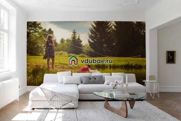 - Обои 3д в гостиную. С таким приемом нужно поосторожнее. Для сильно маленького зала он категорически не подходит. Однако, если площадь позволяет, поклейте на одну из стен фотообои с изображением, например, дороги, пирса, тропинки в лесу и т.д.