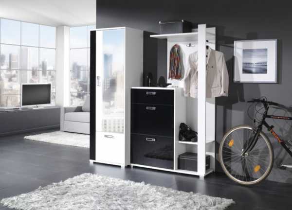- Монохромное сочетание цветов придаст прихожей в квартире строгую официальность, а добавление ярких красок сделает ее игриво оригинальной.