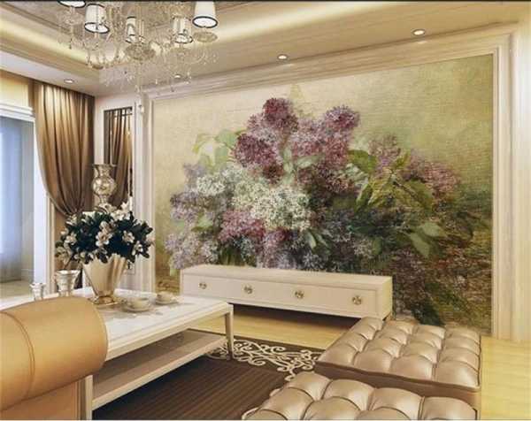 Для гостиной подойдут 3д материалы с объемными видами картинной галереи, видами музеев, старинными замками. Кроме того, можно приобрести для декорирования стен в гостиной абстрактные композиции с цветами.