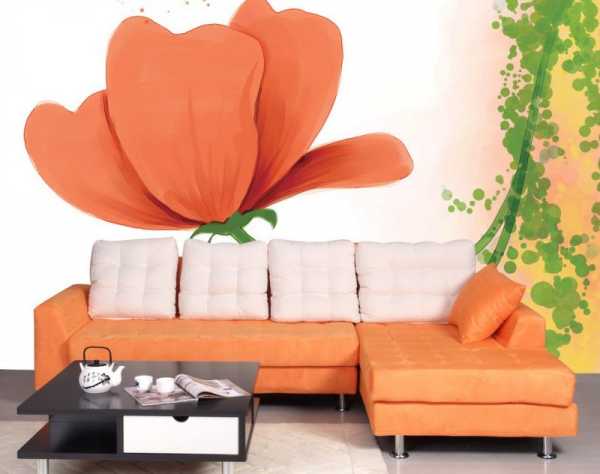 - В небольшой гостиной нежелательно использование объемных рисунков, поскольку они способны оказывать давление на обитателей комнаты. Желательно приобретать полотна, имеющие максимальное изображение, наклеивая их на всю поверхность стены. Такой приме гарантирует эффект визуального расширения пространства.