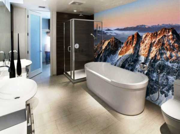 Обратите внимание! Чаще всего в квартирах панорамными обойными полотнами сразу обклеивают все стены помещения.