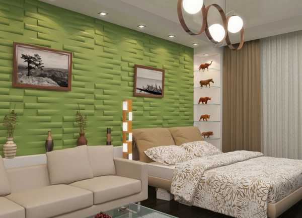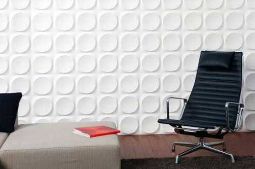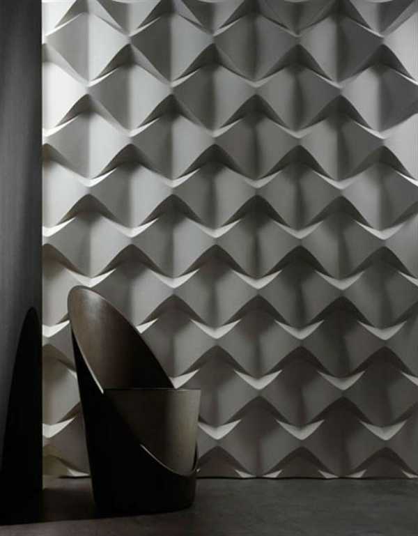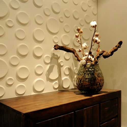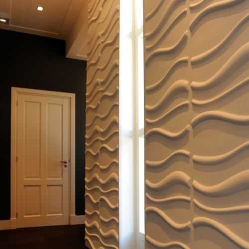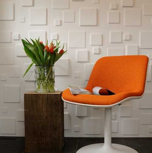 Совет! Объемными материалами (на фото) можно оформить всю стену в комнате, или выделить на ней небольшой участок для зонирования.