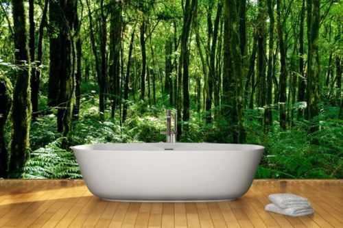 3д фотообои на стене смотрятся действительно необычно. Необязательно их клеить так, чтобы они занимали всю площадь. Вы можете заменить ими картины в доме, так как можно подобрать полотно небольших размеров с изображением красивого парка, леса или пейзажа.