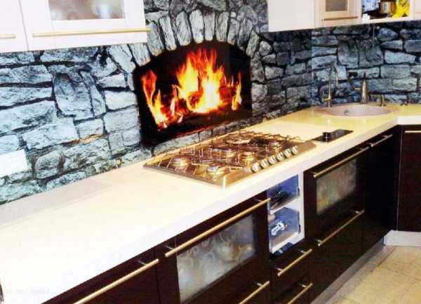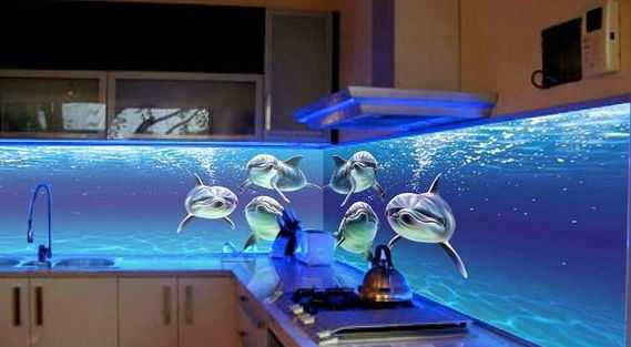 Высокие эксплуатационные характеристики 3d обоев делают целесообразным их размещение даже в рабочей зоне кухни. Объемная картина может стать альтернативой традиционной плитке.
