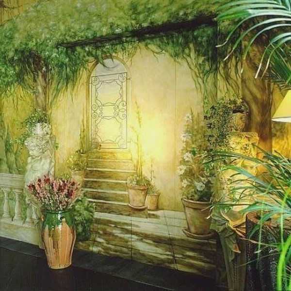 - создание на плоской поверхности стены глубокого, объемного изображения, зрительно передающего перспективу;