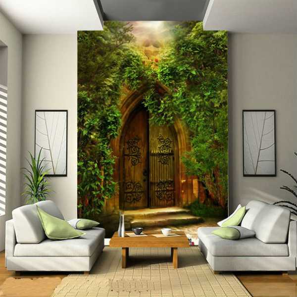 Важно! Если вы подберёте фотообои, на которых изображены открытые окна или двери на какой-нибудь вид, будьте готовы к тому, что это увеличивает пространство, так как сложится ощущение дополнительного выхода из комнаты.