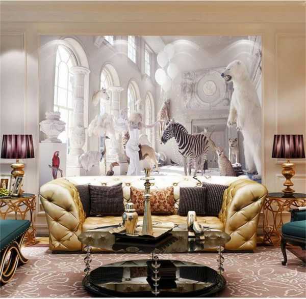Выбирая обои 3д в гостиную, следует исходить из ее размера. Если комната невелика, имеет смысл остановиться на стандартных, которые наносятся на всю поверхность стен. На них обычно изображены геометрические или абстрактные орнаменты, не требующие идеального сопоставления рисунка. Их отличительной особенностью является также то, что они позволяют зрительно увеличивать помещение. Гостиную в классическом стиле даже можно дополнить декоративными бордюрами вдоль потолка в 3д-формате, которые будут выглядеть как настоящий, объемный элемент.