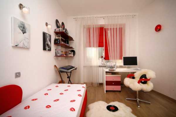 Если размеры комнаты позволяют, то вполне возможно дополнить комнату другой мебелью и предметами интерьера. Если комната небольшого размера, то идеальным вариантом для нее вместительная односпальная кровать, рассчитанная на одного взрослого человека. Лучше всего, если кровать будет дополнена выдвижными ящиками. При подборе обоев для спальни подростка, лучше всего подбирать светлые пастельные тона, однако, если она отдает предпочтение ярким оттенкам, то можно выполнить комбинирование. Основной яркий тон можно сочетать с белыми, бежевыми, золотистыми и другими оттенками. В небольшой комнате лучше всего будут выглядеть достаточно спокойные пастельные тона, но не стоит категорически отказываться и от ярких оттенков, которые легко смогут найти свое отражение в декоративных элементах.