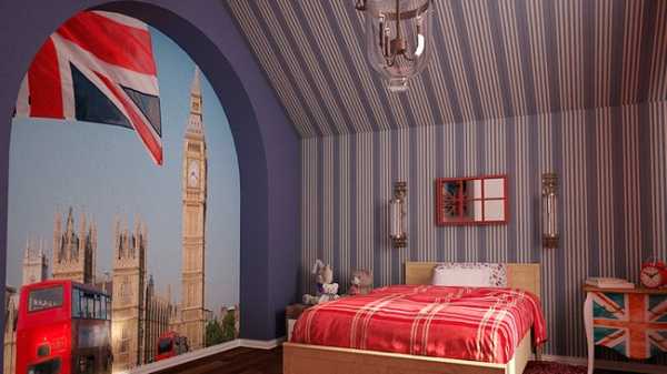 Комната подростка в классическом стиле - Английский. Здесь преобладают красные, синие и белые цветовые решения. Если правильно сочетать все оттенки, то получится очень оригинальное помещение, которое полюбят все. Учитывая название направления, неотъемлемой частью интерьера должен быть символ страны – ее флаг. Но его можно заменить на любые другие знаковые предметы. Поэтому фотообои отлично подходят.