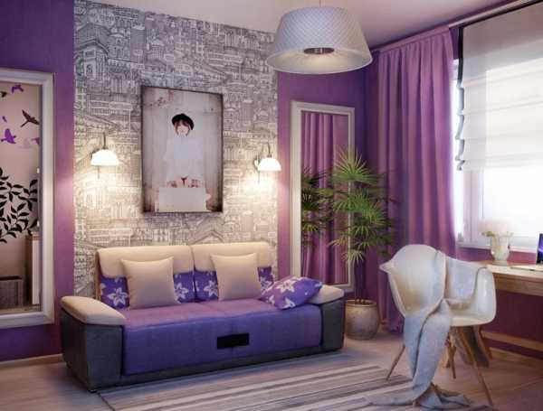 - При выборе в сиреневых обоев вам следует обратить внимание на то, что чрезмерное использование подобной цветовой гаммы негативным образом сказывается на усталости глаз. Кроме того, общее влияние на настроение – также не лучшее. Тем не менее, клеить обои таких цветов в комнате девушки – можно. Однако вместе с этим надо усвоить одно правило: добавляйте в интерьер более светлые, нейтральные или даже «теплые» тона.