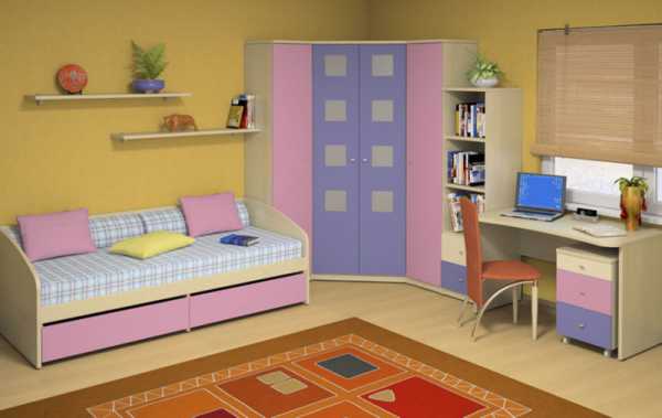 Детскую комнату не следует перегружать лишними предметами мебели, поэтому достаточно приобрести традиционный набор: кровать, вместительный шкаф и письменный стол