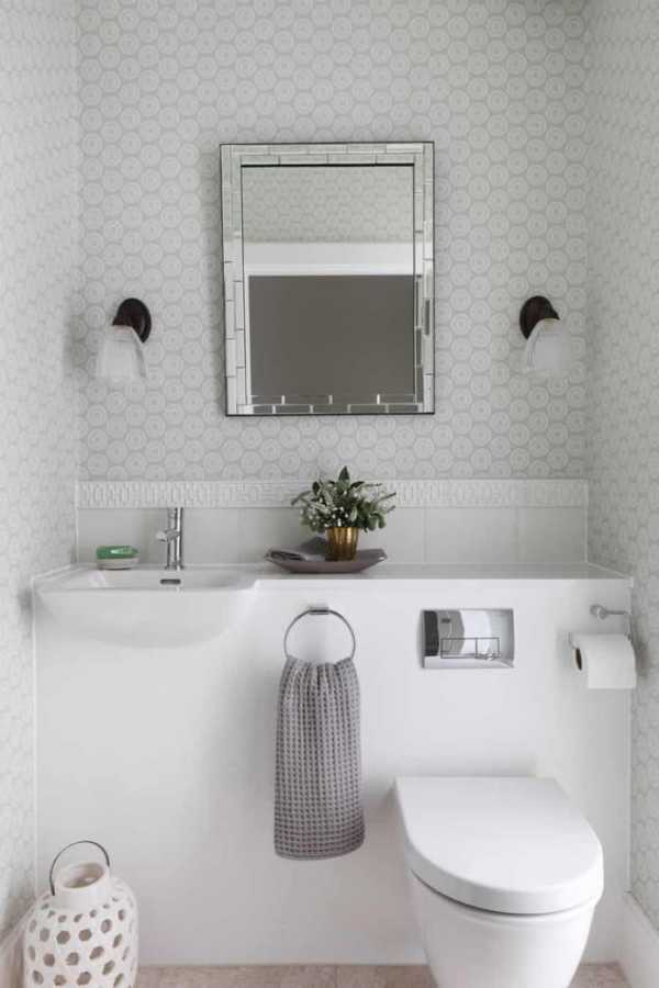 Для небольшого туалета лучше использовать обои с мелкими геометрическими узорами, например мелкая клетка. Они не будут явно бросаться в глаза и скрадывать пространство. Так же актуальным остается проверенный прием с горизонтальными и вертикальными полосами, которые в зависимости от направления «вытянут» или «удлинят» стену.