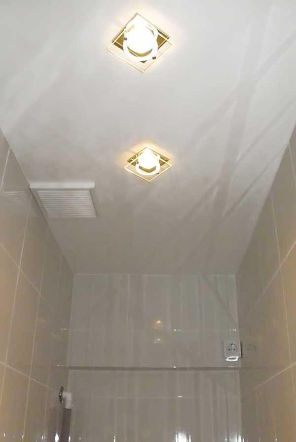 Натяжной потолок не боится влаги, за ним легко следить, может быть глянцевым и отражать свет, представлен в широком ассортименте. Для маленького интерьера туалета лучше подобрать одноуровневое полотно.