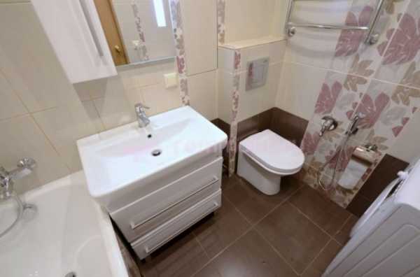 Комбинация нескольких цветов будет смотреться выигрышно и позволит скорректировать восприятие пространства. Более темный оттенок будет «притягивать» стену. Для небольшого туалета лучше использовать сочетание из светлой палитры. Так же можно комбинировать однотонные и разноцветные покрытия, с рисунком или 3д изображением.