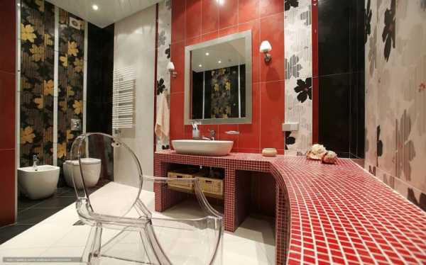 Красный цвет лучше разбавлять белой сантехникой, черными или желтыми предметами декора. Хорошо сочетается с белым цветом.