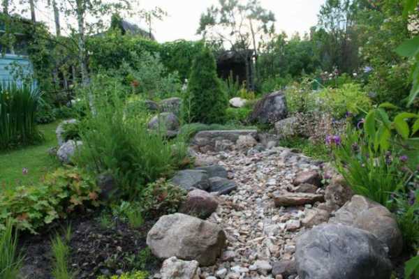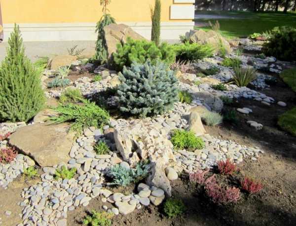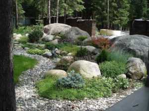 Не стоит дополнять горную композицию идеально гладенькими валунами, если не предвидится сооружение ландшафтного водопада.
