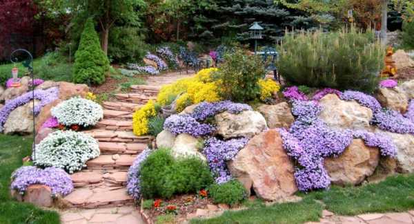 Именно правильный, гармоничный подбор растений – цветковых, кустарников, хвойных и их удачная композиция на каменных террасах, отличают альпийскую горку от других цветников.