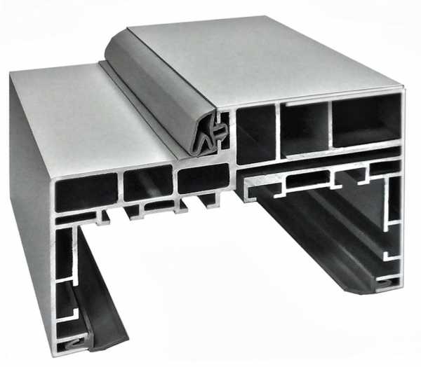 - Коробка или рама. Выступает основой для дверного полотна. Раму изготавливают из двух частей алюминиевого профиля, соединенного термомостом. Толщина коробки – не менее 70 мм с пятью воздушными камерами. Такой вариант конструкции относится к категории «теплые двери».