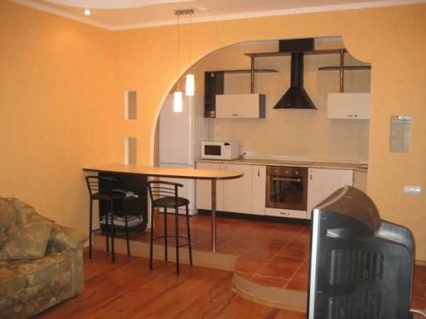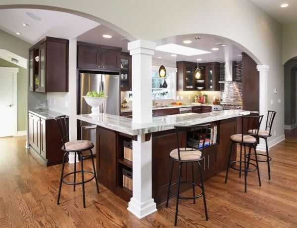 Удлиненная арка над барной стойкой, отделяющая зону кухни