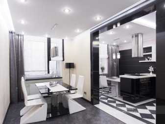 Реализация таких проектов на самом деле не сложнее, чем более простых. Интересным дизайнерским решением становятся «оконные проёмы» с дополнительной подсветкой и являющиеся полочками для различных стильных украшений, а если достаточно света, то и для цветов.