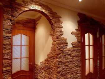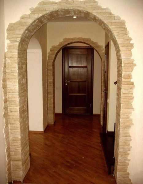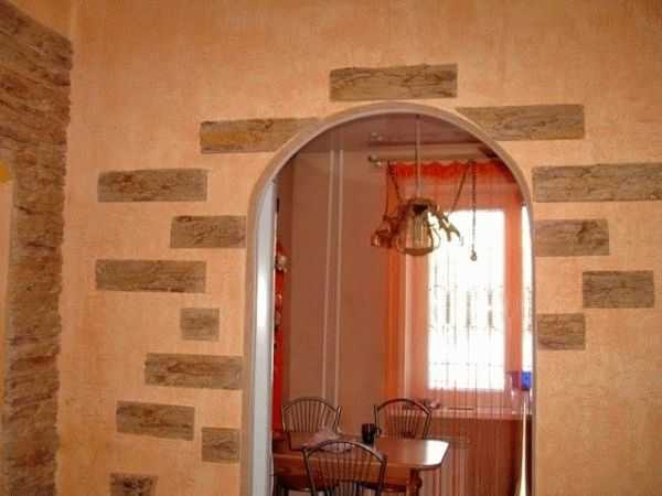 Помимо натурального камня, можно отделать арочный проход натуральным или искусственным камнем. Такой вариант очень понравится любителям классики.