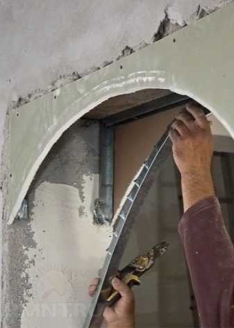 Каркас будущей конструкции выполняется из металлического профиля. К слову, из профиля делают не только проемы для арок, но и ниши для шкафов, и с его помощью даже воздвигают целые стены. Профиль бывает либо алюминиевый, либо стальной. И первый, и второй при использовании дополнительных инструментов поддается деформации, в связи с чем можно изготавливать не только прямые, но и фигурные конструкции.