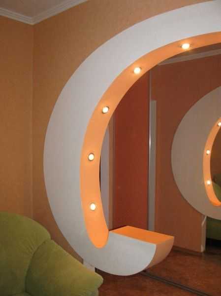 виды арок для зала и кухни с подсветкой, особенности конструкции, плюсы и минусы