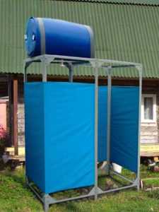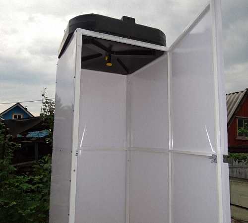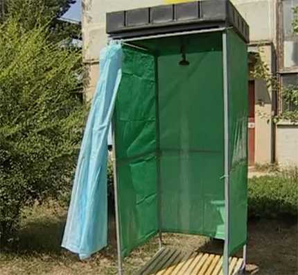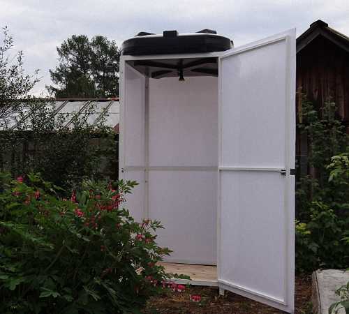 - благодаря надежной герметизации кабинки пластиковый бак должен держать тепло, что позволит принимать душ осенью;