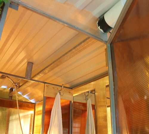 - простой монтаж: бак легко поднимается и закрепляется над конструкцией душа.