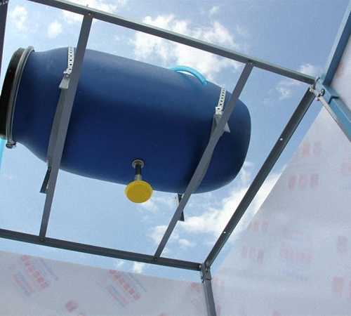 Если емкость не пластиковая, а плоская металлическая, то весь процесс подогрева должен происходить быстрее. Вместе с тем установка на кабинку пластмассовой бочки обеспечивает максимальную эффективность использования солнечной энергии. Нет необходимости пользоваться электроникой и фотоэлементами.