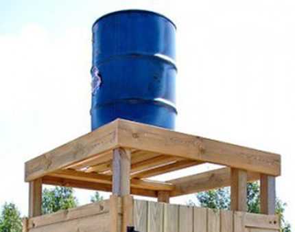 В изготовлении бака для летней душевой чаще всего используются металлические бочки – тара из-под жидкой продукции, вместимостью не менее 100 л: