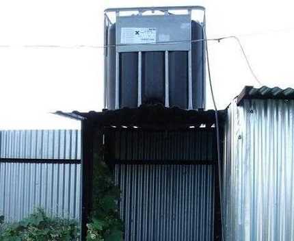 Черная сталь — относительно недорогой материал, и можно позволить себе бак большого объема. Баки из нее можно часто увидеть в сельской местности. Конструкция такого бака долговечная, прочная и незамысловатая: бочка или куб с открытым верхом для попадания солнечных лучей. Большой недостаток — подверженность коррозии. Кусочки ржавчины попадают в воду для душа.