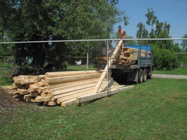 Разгрузка бруса.